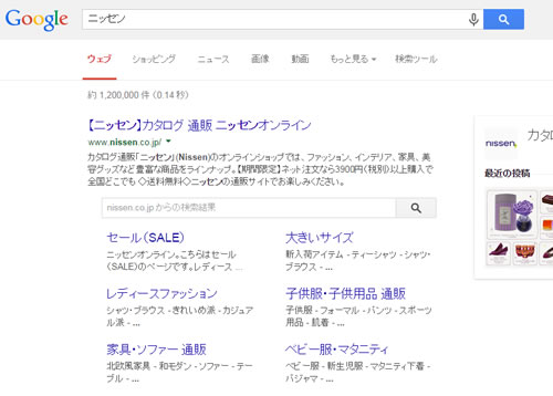 GoogleでECサイト名で検索すると、検索結果にサイト内検索フォームが出現するようになっています。